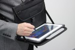 「ARROWS Tab」「iPad」「iPadmini」の3種類にそれぞれ対応した保護シートが付属。入力面のクリア素材には劣化対策を施し、ショルダーベルトにモバイルルーターやスマートフォンを収納可能なポケットを設置。背面のネームカード入れに名刺や名札を入れておくことで、使用者を明確にできる。