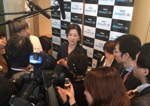 (報道陣の質問に答えるアマゾンの永妻玲子・プライムナウ事業部長)