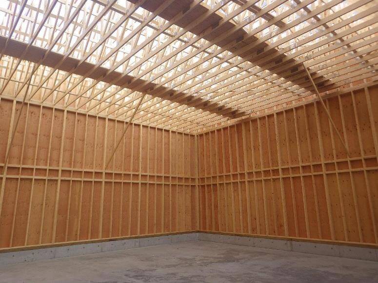 同社の木造大規模倉庫は耐震性と耐火性が高く、室内有効面積を最大限に活用できるのが特徴。枠組壁工法(2×6工法)を採用し、2004年には耐火構造の大臣認定を取得、4階建ての中層建築物や3000平方メートルを超える大規模な建築が可能だという。