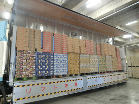 北海道では日清食品が恵庭センター、サントリーが千歳配送センターなどで商品を保管し、そこから道内のエリアに配送していたが、今後はサントリーの千歳配送センターで商品を積載した車両が、日清食品の恵庭センターに立ち寄り、混載作業を行う。その後、帯広エリアの卸店、小売店の配送センターの一部に共同配送する。