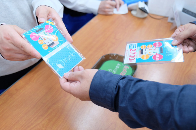 トランクは、スマートフォンでアプリダウンロード後サービスに登録する方法でサービスを提供してきたが、ヨドバシカメラ店舗では、5箱分の代金がチャージされたカードを販売する。店頭で指定のタグを取り、レジでカードと交換する。カードに記載されているシリアル番号をアプリにて入力することで利用可能となる。