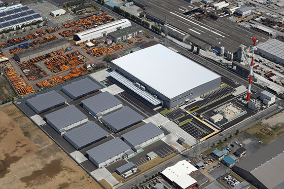 建物は地上2階建て、延べ床面積2万2000平方メートルで、1階には施設両面にトラックバースと大庇を設け、荷捌きの効率性が高く、雨天時にも作業がしやすい環境を整えた。加えて梁下有効高は1、2階とも6.5メートルを確保し、1階の床荷重は1平方メートルあたり2.5トンとするなど、標準的な仕様に比べハイスペックで汎用性の高い施設設計とした。また、環境負荷軽減のため、屋根面には1メガワットの太陽光パネルを設置する。