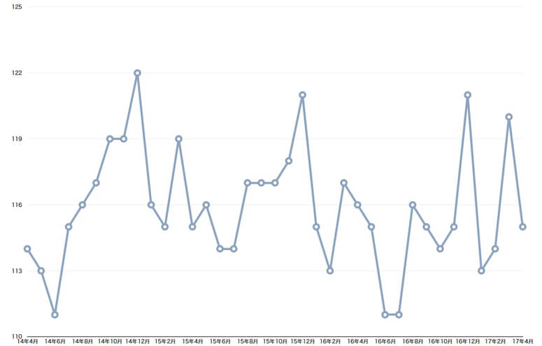 ■成約運賃指数(月別)の推移(全ト協・日貨協連資料を基にLOGISTICS TODAY作成)