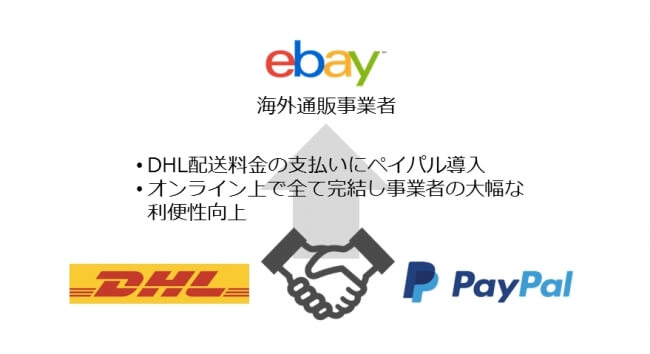 世界的なECの拡大とともに、日本でも越境EC市場へ参入する企業、特に中小企業・小規模事業者が増えている。今回、DHLジャパンとペイパルは、イーベイ利用事業者の国際エクスプレス配送の決済にペイパルを導入し、日本の海外通販事業者の配送料金の支払いを、一括・オンライン上で全て完了させることで、利便性の大幅な向上を図り、中小通販事業者の越境EC事業をサポートする。
