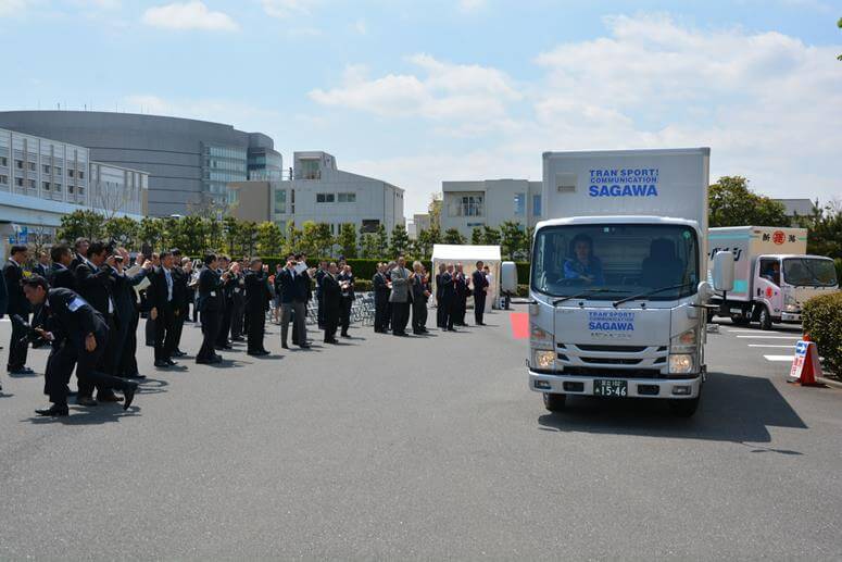 4月24日には東京ガスの「ガスの科学館がすてなーに」(東京都江東区)で試験車の出発式を開催。行政や運送事業者など関係者70人が出席した。