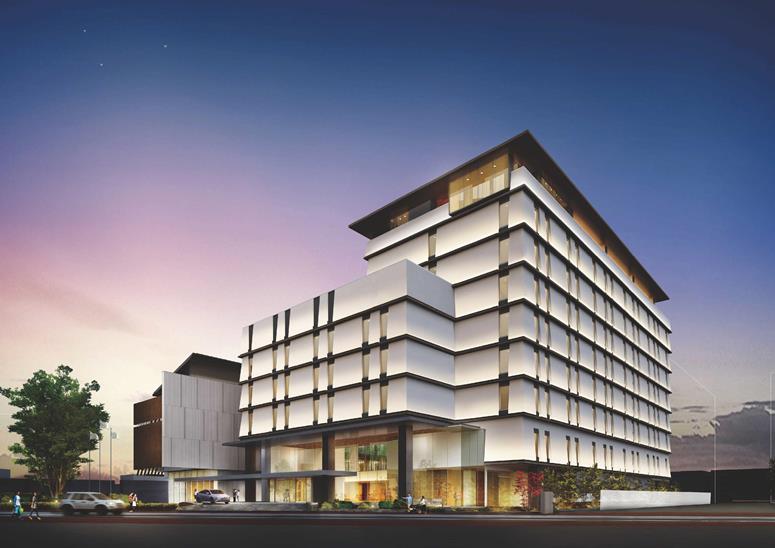 建物は、地上9階建てで「和」のテイストを散りばめ、落ち着いた空間を表現。2階には中庭を設置している。ホテルには、地元客も利用可能なブッフェ主体のオールデイダイニングを計画し、潮見駅前地域の活性化に寄与するとともに、9階には高級日本料理店を設けるなど、沿線のホテルとの差別化を図る。