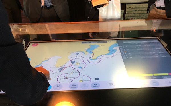 システムは、船内にテーブル上の「画面」を設置して紙海図と同様に書き込めるようにし、船長や航海士がその海図を見ながらチェックリストを作成、乗組員はスマートフォンでそのリストや海図を閲覧できる仕組み。陸上の会社側でもリアルタイムに情報を確認できる。作成したデータはクラウドネットワーク上に残るため、若手船長はベテラン船長が作った細かな航路をすぐに確認し、自船の運航に役立てることができる。