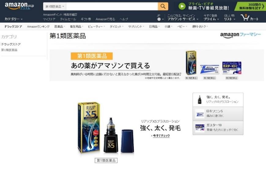 ECアマゾンジャパンは24日、医薬品を取り扱う「Amazonファーマシー」で、新たに大正製薬の「リアップX5プラスローション60mL」、第一三共ヘルスケアの「ロキソニンS12錠」「ガスター10S錠」など80点の第1類医薬品の販売を開始したと発表した。最短で翌日に配送する。