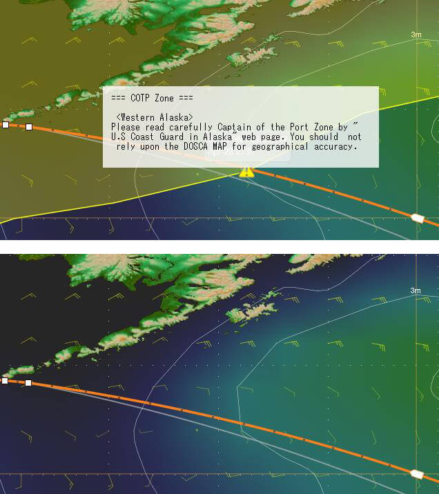 ▲新たな「Capt.’s DOSCA with Hazard Map」・上と従来の「Capt.’s DOSCA」・下