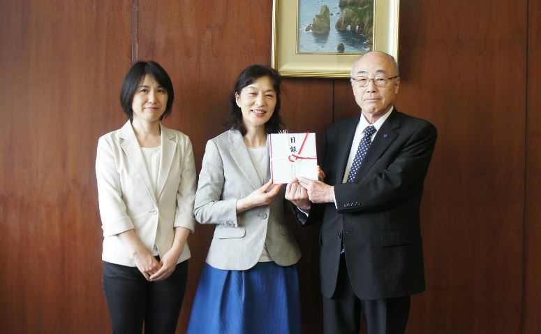 (画像:左からいわて生協の岡部真由美理事、内澤祥子副理事長、岩手県ユニセフ協会の三浦宏会長)