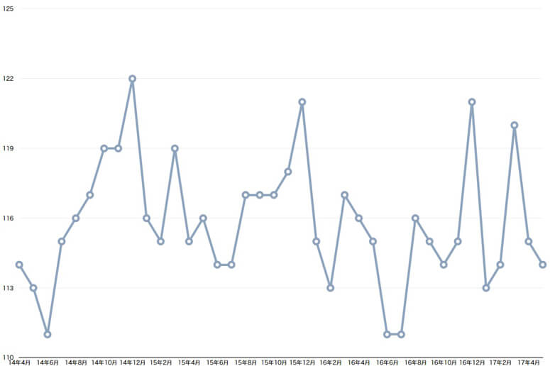 ■成約運賃指数(月別)の推移(全ト協・日貨協連資料を基にLOGISTICS TODAY作成)