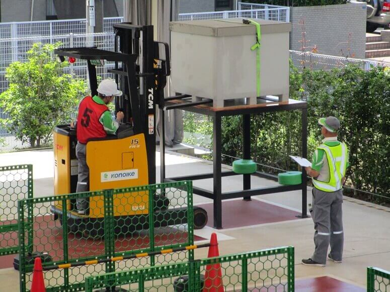 今回は、17年2月からグループ内独自のフォークリフト運転安全規準「KONOIKEスタンダード」に基づき審査を行い、安全規準の定着を促進するとともに、運転技能・点検技術・安全知識を競った。