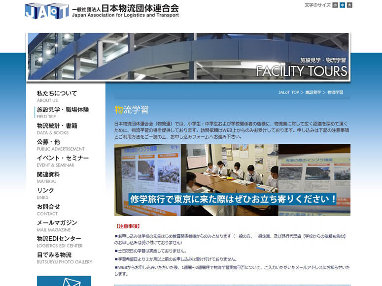 全国各地から修学旅行で上京する中学生の企業訪問(自由研究テーマ)の対象として物流連が受け入れ先となり、物流学習を提供していくことを目的に、団体のホームページに申し込みフォームを開設・公開し受付を開始する。