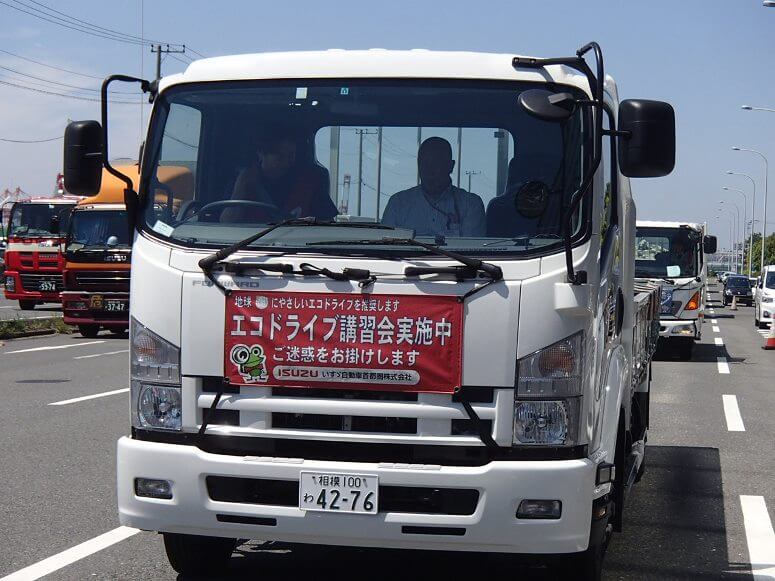 当日は、実走行の研修では日常運転を終えた後、エコドライブの方法の説明を受け、その後に同乗した指導員の指示に従いながらエコドライブ運転を行った。日常運転と比較し、参加したすべてのドライバーの燃費が向上しており、同時に燃料削減量やCO2の排出削減量などを再確認し、エコドライブの「重要性」を実感した。