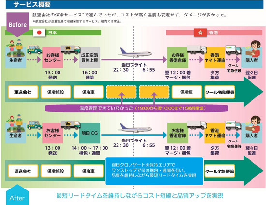 サービス名は「ヤマトナチュラルエアカーゴ」で、最初の利用者としてオイシックスドット大地(東京都品川区)が運営する「Oisix香港」に同サービスを導入した。
