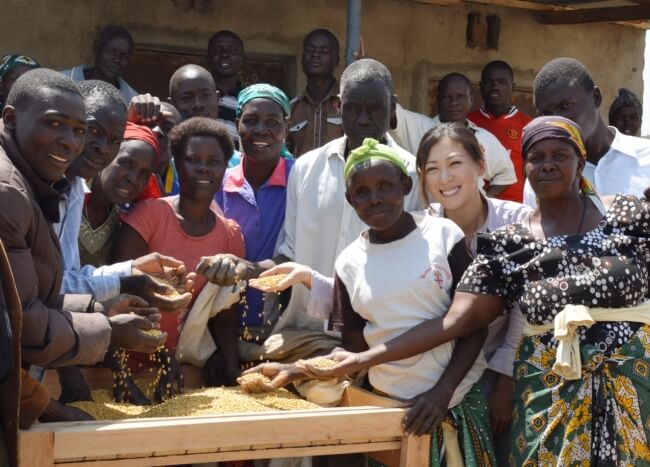現在はケニア・ミゴリ郡の小規模大豆農家に対し、種子や肥料の貸与・農業指導などの生産量と品質を向上させるシステムを提供することで、収入向上をサポート。収穫された高品質な大豆を安定価格で買い取り、現地の加工メーカーに販売している。