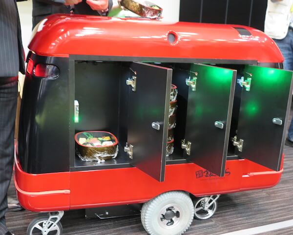 話題ZMPと宅配寿司「銀のさら」を展開するライドオン・エクスプレス(東京都港区)は13日、歩道を自動走行する宅配ロボットのプロトタイプを報道陣に公開した。