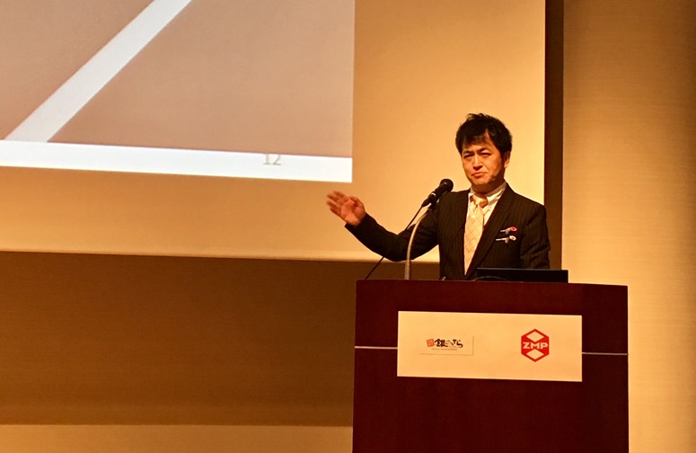 ZMPの谷口恒社長は、「現在、東京芸術大学の博士課程に在籍しているが、その研究室で宅配ロボット構想に着想した」と宅配ロボットの開発に至った経緯を説明。「イベントごとの許可ではなく、シニアカーなどと同じ扱いにして早期に歩道を走行させられるようにしたい」と、実用化に向けて規制緩和の必要性を訴えた。