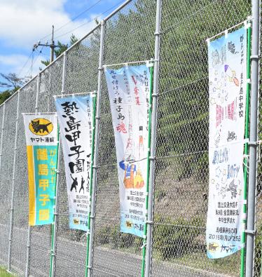 ▲応援メッセージのぼり旗で大会を盛り上げる