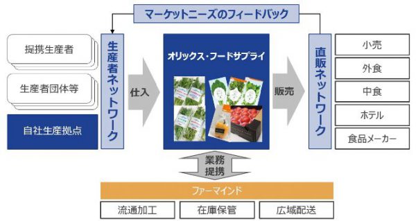 提携により、オリックス・フードサプライは提携生産者、生産者団体などから国産野菜を仕入れ、ファーマインドの広域で多機能な物流ネットワークを活用し、適切な温度管理で全国の小売事業者や飲食事業者などに販売する。