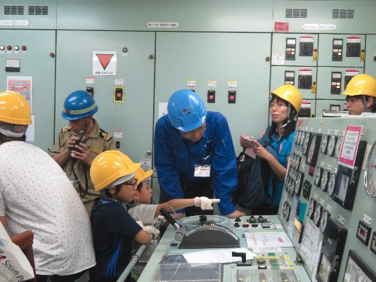 また、エンジンルームでは、メインエンジン・発電機などを制御するためのモニターやメーター類の説明を受け、参加者は普段目にすることのない本船の構造に興味を持たった様子だった。見学後のキャビンでは「どれくらいの荷物や燃料が積めるのか」「航海日数はどれぐらいか」といった船に関する質問から、「どのようにして船長になったのか」「酒は飲めるのか」と船員や生活面の質問まで飛び交い、海運や船員の理解が深まる見学会となった。