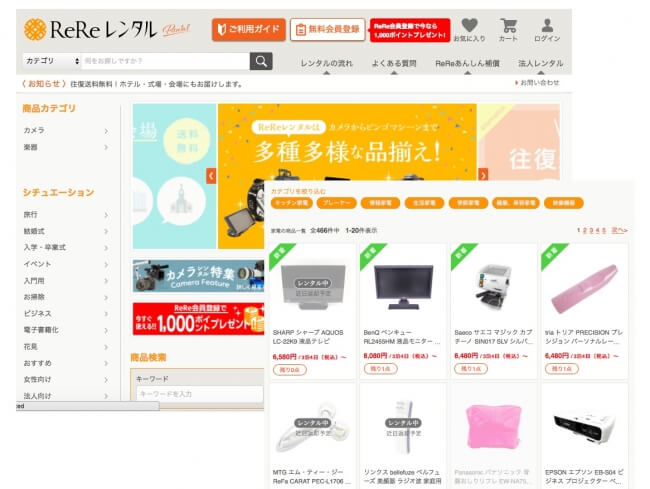 ReReレンタルは、ネットから申し込みができる宅配レンタルサービスで、ウェブサイトのレンタル商品リストから希望の商品を選ぶと、利用者の自宅または希望住所まで宅配される。これまではベータ版としてサービスを行ってきたが、「顧客満足度が96%を超えたことから、ポイントサービス対応・取り扱い商品の拡充と合わせ、正式にサービスを開始することにした」(マーケットエンタープライズ)。