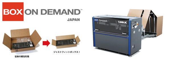 サービス・商品タナックスは、8月1日から10月25日までの期間限定で、東京都大田区の日本通運東京海運支店東京食品ターミナル事業所内に、商品サイズに合わせて多様な段ボールを1個から製造する「ボックスオンデマンド」のデモルーム(予約制)を開設する。