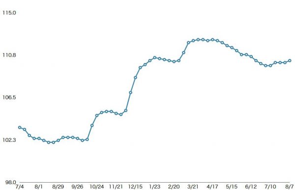 | 地域 | 8月7日(単位:円) | 7月31日(単位:円) | 上昇率 |