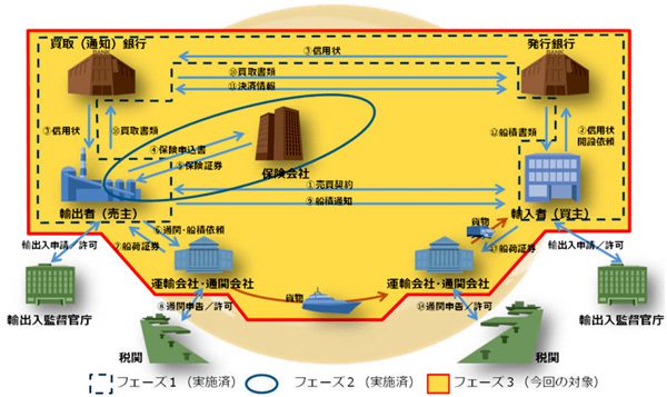 銀行・保険・総合物流・輸出入者などの貿易関係業界を代表する14社が「ブロックチェーン技術を活用した貿易情報連携基盤実現に向けたコンソーシアム」を立ち上げる。