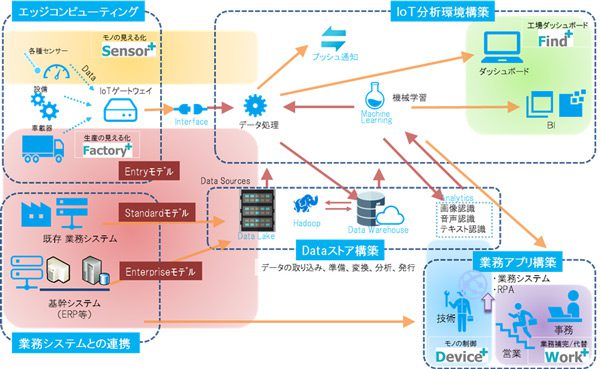 設備機器やセンサーのデータを収集・分析し、異常の早期発見と稼働状況確認コスト削減を目指すIoTプラットフォーム「MONOweb」(ものウェブ)を製造業向けに提供し、製造現場の課題を可視化したり、事前に不具合を把握したりできる。