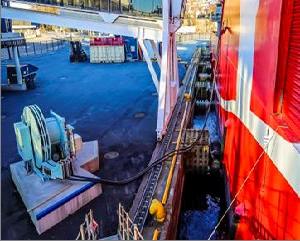KLサンドフィヨルドが、港に停泊中に使用する電力を陸上電源に切り替えることで、本船の発電機で使用する燃料を削減できるほか、その燃料消費によるNOx、SOx、CO2やほかの微粒子の大気放出を大幅に軽減することが可能。
