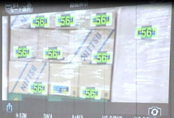 ▲凹凸のある貨物との距離を空中で一定に保ちながら飛行し、ドローンに搭載したリーダーでカメレオンコードを認識