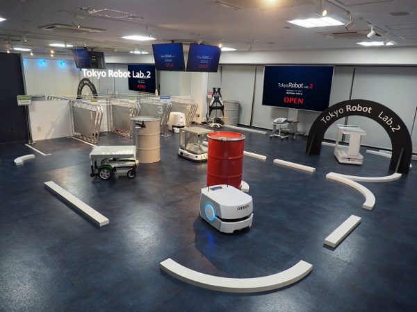 東京ロボットラボ2は、1月に開設した複数メーカーの最新型次世代ロボットショールーム「Tokyo Robot Lab.」(東京ロボットラボ)に続く新たな常設展示スペースで、自動搬送ロボットの走行デモンストレーションエリアを設け、複数の自動搬送ロボットが障害物を検知し自動停止する動作、レーザースキャナーで周囲の空間距離を計測しながら走行する動作などを間近で見ることができる。