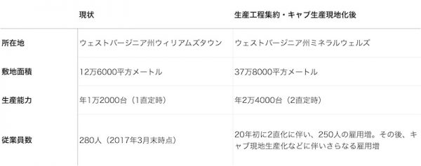 まずは現工場と周辺に分散している生産工程を集約し効率化を図り、次のステップとして日本で行っている北米専用車のキャブ生産を同工場へ移管。これらにより、商品供給のリードタイムを短縮するとともに、将来の販売増を見据えた体制も整え、競争力強化を図る。投資額は1億ドル。