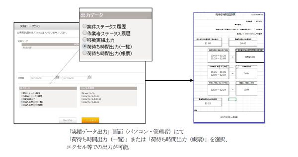 省令では荷待ち時間が30分を超えた場合に記録することとなっているが、サービス上で簡単に記録・出力ができるため、日頃の業務記録として活用することもできる。