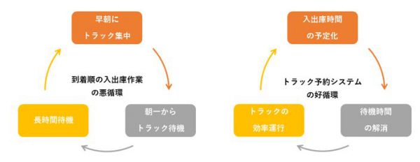 低温物流業界でも同じ課題を抱えており、同社は「物流センターに到着した順番で入出庫の対応を行っていること」に一因があると判断。「そのためにトラック(荷主)側は営業時間の開始より前に物流センターに到着し、順番を確保するために待機」するという状況も生み出している。