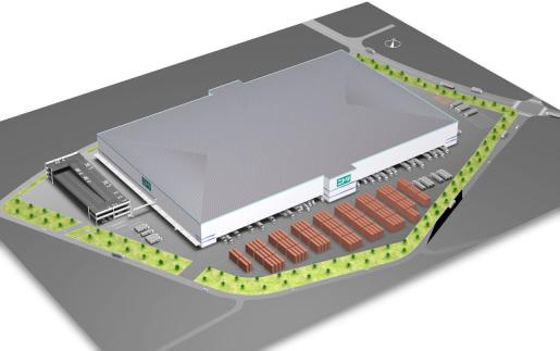 15万7000平方メートルもの延床面積にさまざま物流機能を集約し、敷地内にコンテナの一時保管・取り扱いスペースを設けて作業の平準化にも取り組む。2018年秋に着工し、20年夏の竣工を目指す。