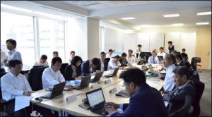 重大海難対策本部では、収集した情報をもとに船主、運航者として取るべき対応について協議し、緊急対応体制を確認の上、模擬記者会見を行った。