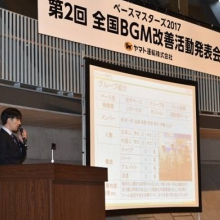 BGM改善活動発表会は各部門3グループ計9人が出場。ベース作業の改善活動について発表し、活動の自主性、創意工夫、全員参加、継続性、水平展開性などを審査した。