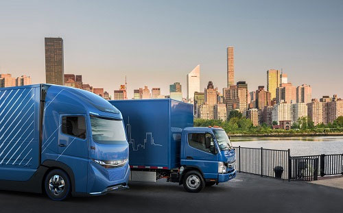 eキャンターは、車両総重量7.5トン、航続距離100キロの初の量産モデルで、セブン-イレブンとヤマト運輸に導入し、米国ではUPSのほか、ニューヨークに拠点を置く4つの非営利団体に提供している。
