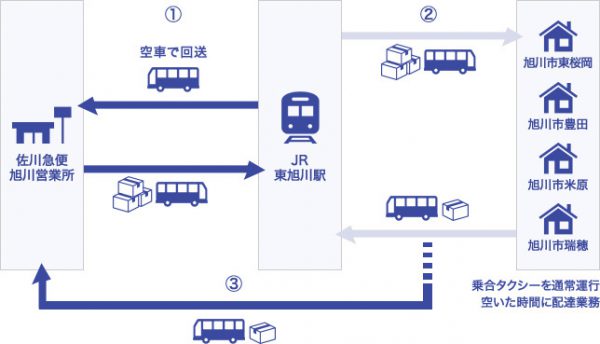 ロジスティクス佐川急便は、11月1日から旭川中央ハイヤーと乗合タクシーを活用した貨客混載事業を開始する。
