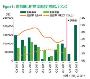 首都圏の新規需要は2013年以降の四半期平均を上回る7万7000坪となり、東京ベイエリアでは15年7-9月以来の供給となった。注目された東京流通センター「物流ビルB棟」は8割以上の稼動率となっている。