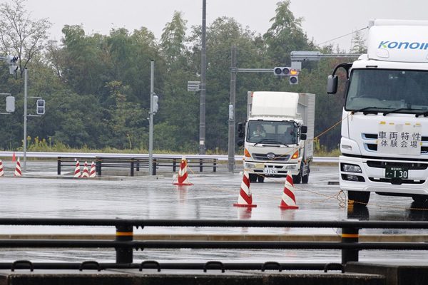初開催となった今回は4トン(中型)、10トン(大型)、トレーラーの3部門に分かれてドライバー25人が出場、学科、点検、運転実技の3種目に挑戦した。特に運転実技はグループの順守基準「KONOIKE運転スタンダード」を参考に、研修センターの教官による厳しい審査が行われた。点検競技では、日野自動車の指導員が採点する中、緊張感のあるコンテストとなった。