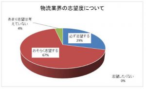 ロジスティクス日本物流団体連合会(物流連)は1日、物流業界インターンシップ(9月開催)の終了後に参加学生に対して行ったアンケートの結果を公表した。96%が物流業界への就職志望を持ったことがわかった。
