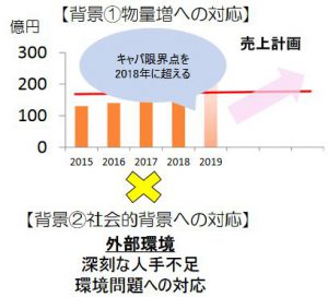 今後、国内事業の持続的な収益力強化に向けて「物流体制を含む改革」が新たな課題となることを踏まえ「物流環境が厳しい中、社外、グループとの共配に取り組み、新たなビジネスモデルを確立する」「大量保管、大量輸送で効率化を図る」との改革方針を掲げる。