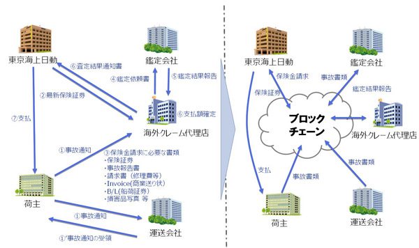 保険金支払い手続きで必要なドキュメントをブロックチェーンを用いて流通させることにより、支払い手続きスピードや正確性が高まることから、東京海上日動では「保険金支払い期間短縮や郵送コストなど削減が期待できる」としている。