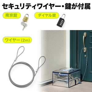 「宅配説明POP」が付属しており、宅配業者が荷物を届けに来た際にわかりやすいよう配慮している。また、盗難防止のためのセキュリティワイヤーと鍵も標準装備し、ワイヤー取り付け穴にワイヤーを通して玄関周りに取り付けすることができる。