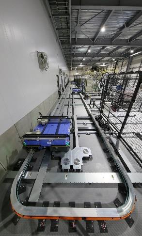 新センターは、製品搬入からパレタイザーによる積み付け、自動搬送台車での自動倉庫への搬送・保管までの工程をすべて自動化することで省力化を実現。また、自動倉庫に加えて平置きスペースも同時活用することで効率的な物流体制を構築した。