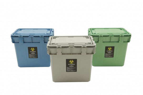 これまで感染性廃棄物の収納容器は、注射針などの鋭利物をプラスチック容器、血液付着物をビニール袋内蔵段ボール容器に収納し、そのまま焼却や溶融などの方法で処分してきたが、容器そのものが廃棄物となるため、処分コストがかかり、環境への負荷も問題となっていた。