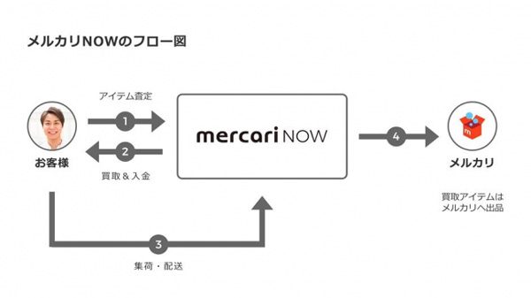 商品を出品するよりも前の段階で自らのアイテムを「お金」に変えることができる先払い方式のサービスで、運営側は振込後、2週間以内に商品を集荷し、メルカリへ出品・販売して代金を回収する。